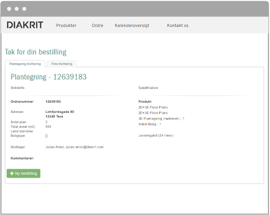 For optimal kvalitet og problemfri levering, anbefales det at bestille gennem dit ejendomsmægler system, såsom Leadhub eller Mindworking. Diakrit er integreret med dit ejendomsmægler system, hvilket sikrer synkronisering af information og levering. Du finder dine login-oplysninger i Diakrits velkomst-e-mail eller ved at kontakte kundesupporten.