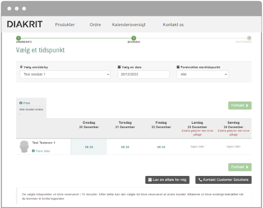 Hvis du ikke har en bookingkalender, sendes bestillingen direkte til Kundesupport, som vil tage kontakt til din kunde for at aftale tidspunktet.